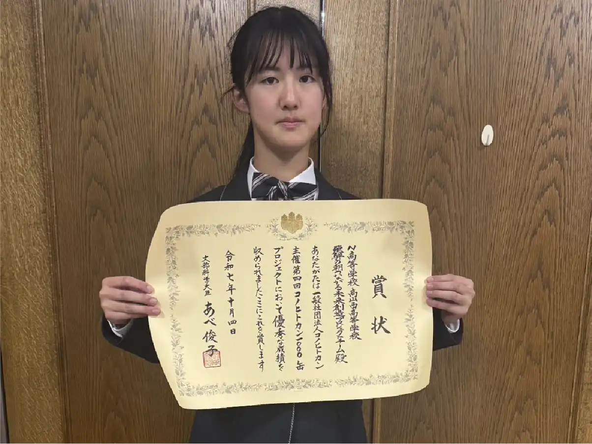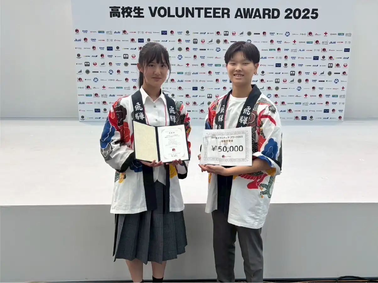 本校1年生の宮田さんとその友人の片野さんによる「飛騨の朝つながる未来創造プロジェクトチーム」が、8月に東京都で開催された「高校生ボランティア・アワード」で、最高位にあたる「さだまさし賞」を受賞しました。さらに、10月に岡山市で開催された高校生・大学生を対象としたビジネスアイデアのコンクール「コノヒトカン1000缶プロジェクト」でも、最高位にあたる「文部科学大臣賞」を受賞しました。このような大きな賞を続けて受賞するのは大変な快挙です。