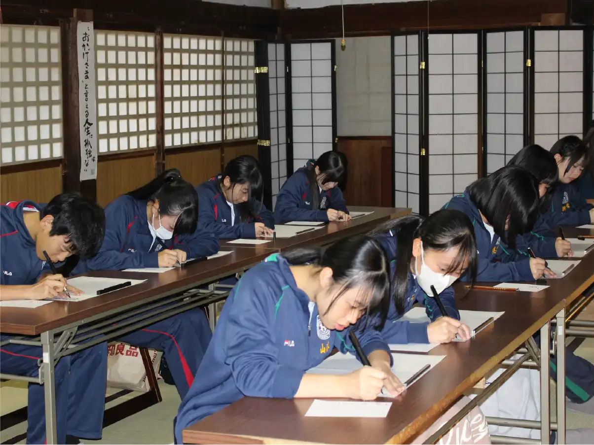 11月12日(水)に、本校書道部が高山善光寺を訪れ、写経体験を行いました。写経を通じて自然と心も穏やかになり、部員たちにとっても自分自身と向き合う良い機会となりました。写経は、リラックス効果や集中力向上などが期待できます。今回の体験は、生徒たちにとっても前向きで穏やかな高校生活を送るためのヒントを得られた貴重な経験となりました。
