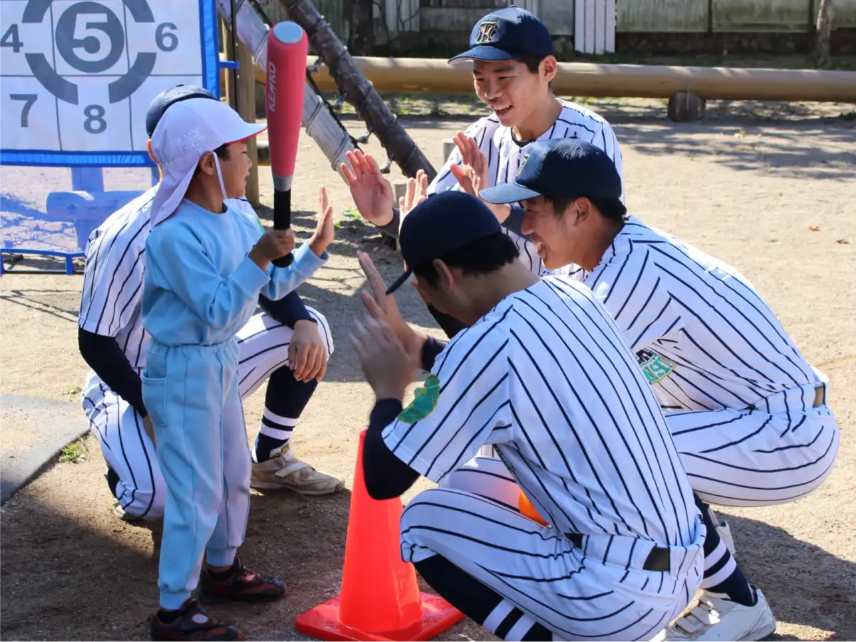 10月20日(月)に、硬式野球部が美鳩幼稚園を訪れ、「ティーボール」教室を開催しました。