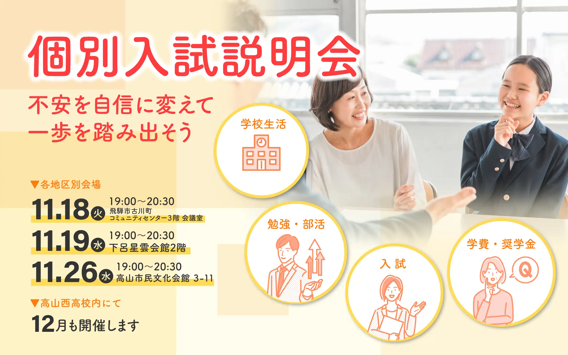 個別入試相談会(第1回4月25日)の日時が決定いたしました。詳しくは