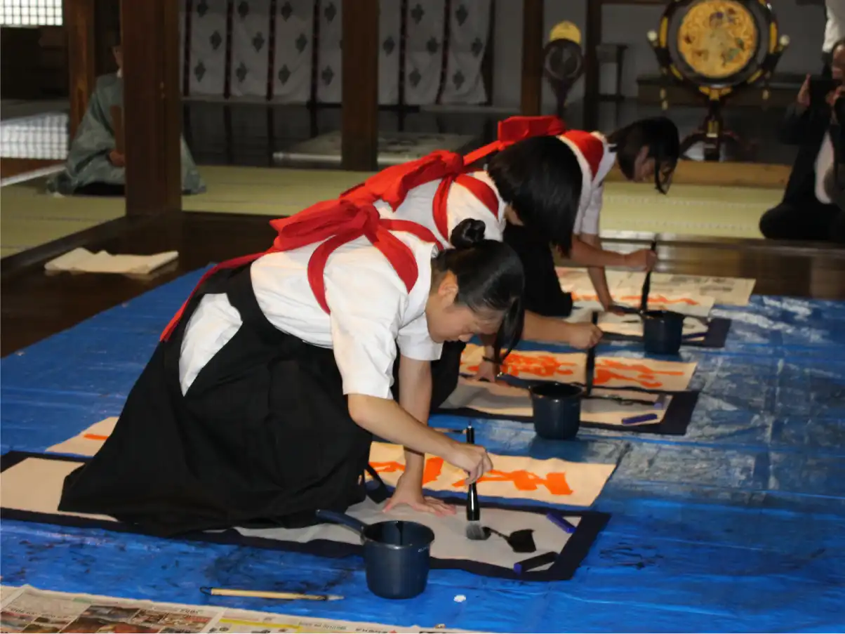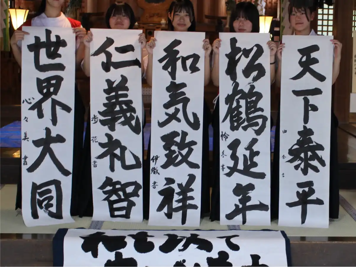 国連の定める「国際平和デー(09.21)」に先立ち、前日の9月20日(土)に、飛騨護国神社の御神前にて、奉納揮毫を行いました。部員それぞれが抱く、平和への願いを静かに揮毫し、「書」で平和メッセージを発信しました。