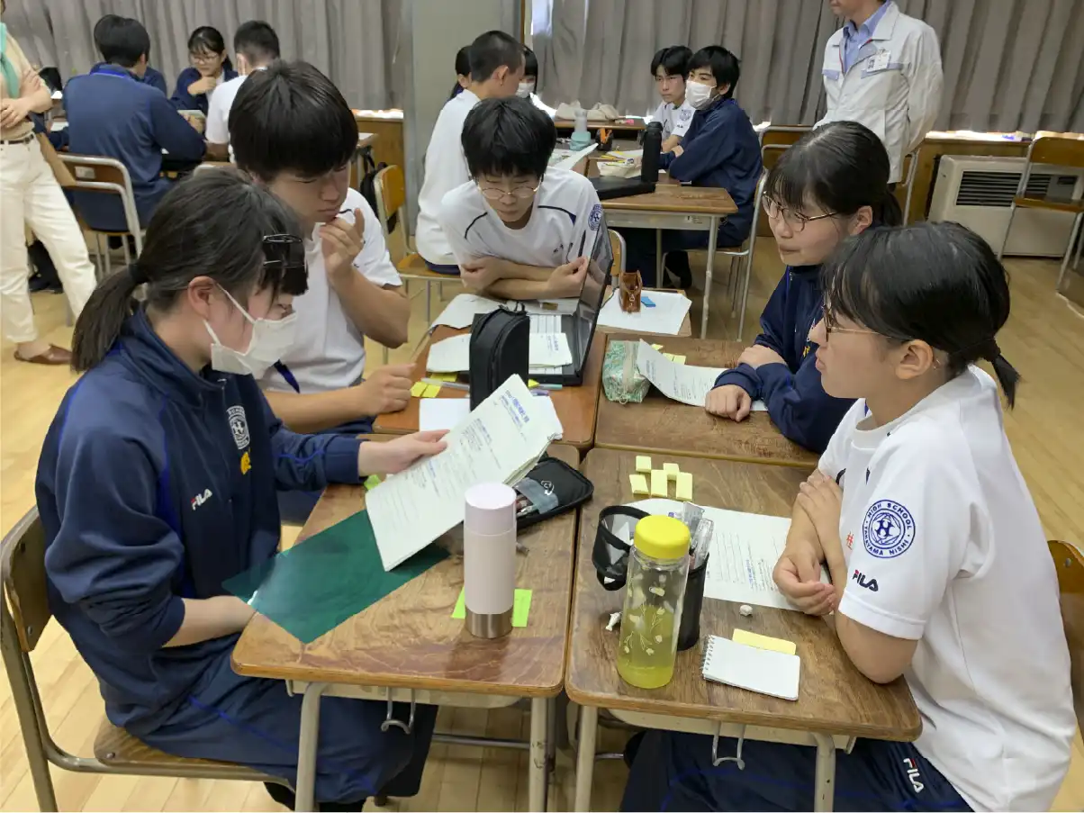 1年F組と1年G組の生徒たちは、10月中に4回(Day1~Day4)実施されたこの講座で、講師としてお迎えしたトヨタ自動車株式会社の職員の皆様からトヨタ自動車で培われてきた現場改善の思想や手法を学びました。
