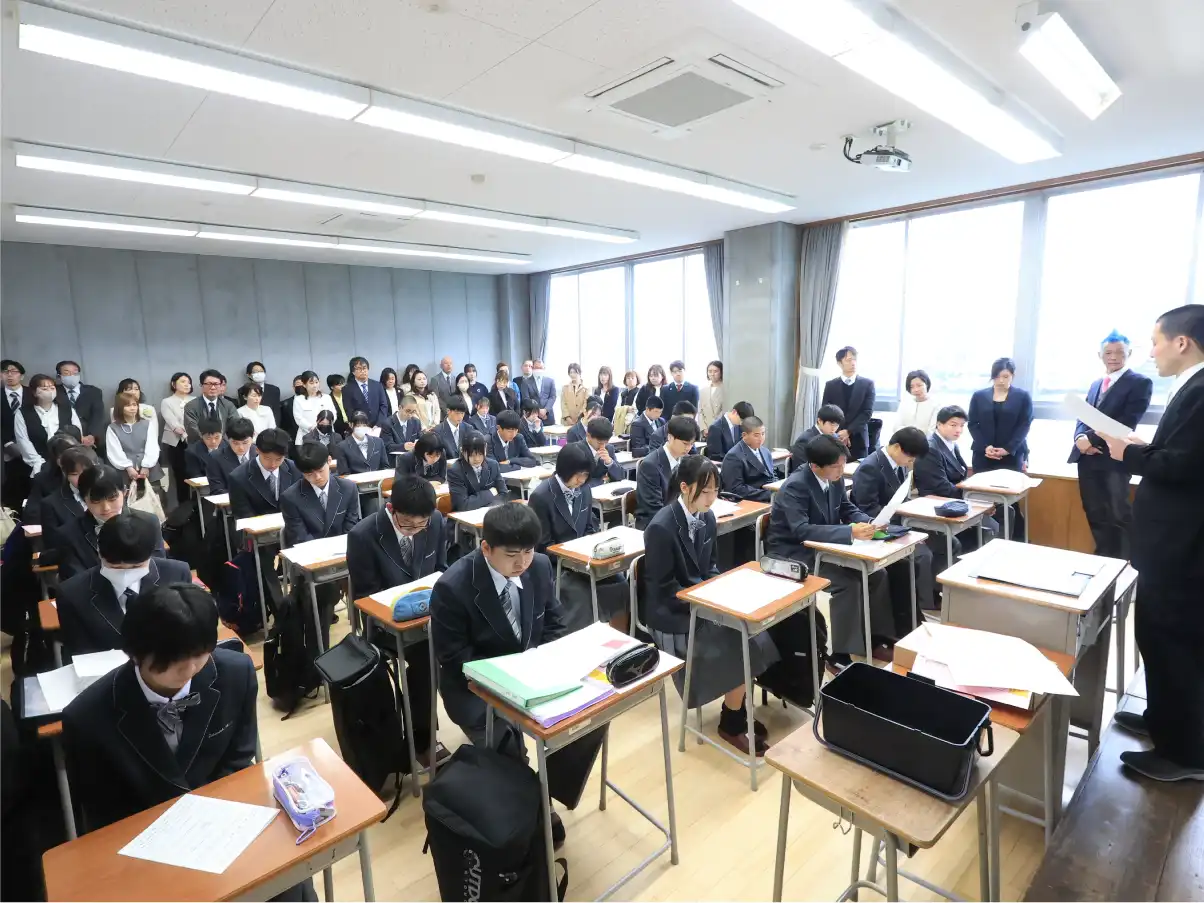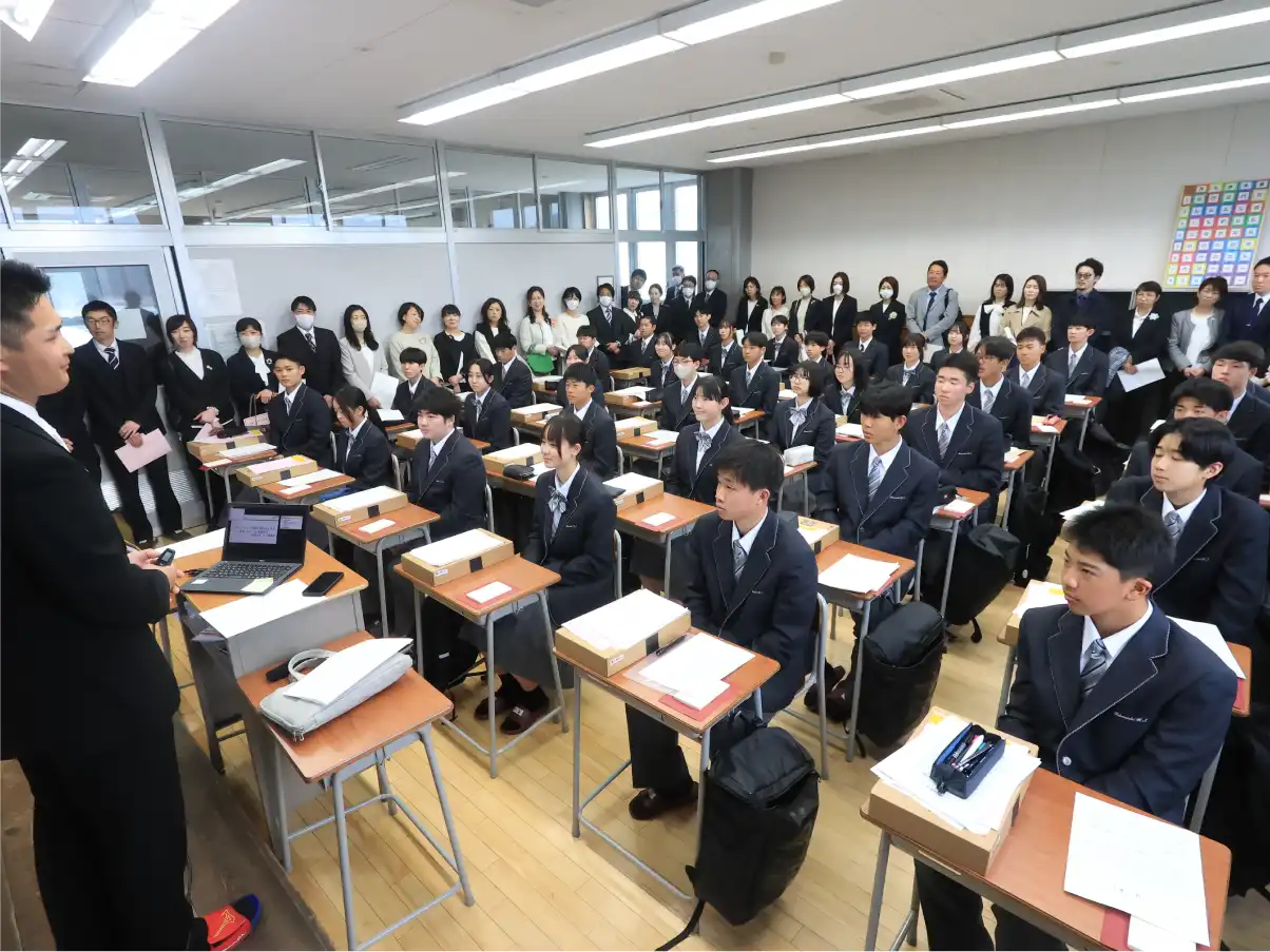 入学式終了後は、各ホームルーム教室へ移動し、クラス担任の先生や、これから3年間をともに過ごす仲間たちと初めて顔を合わせました。これからの学校生活の中で、互いに切磋琢磨しながら成長していくことが期待されます。