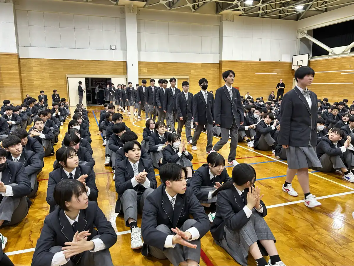 また、部活動紹介では各部の代表者が工夫を凝らした発表を行い、新入生は楽しみながら熱心に耳を傾けていました。
