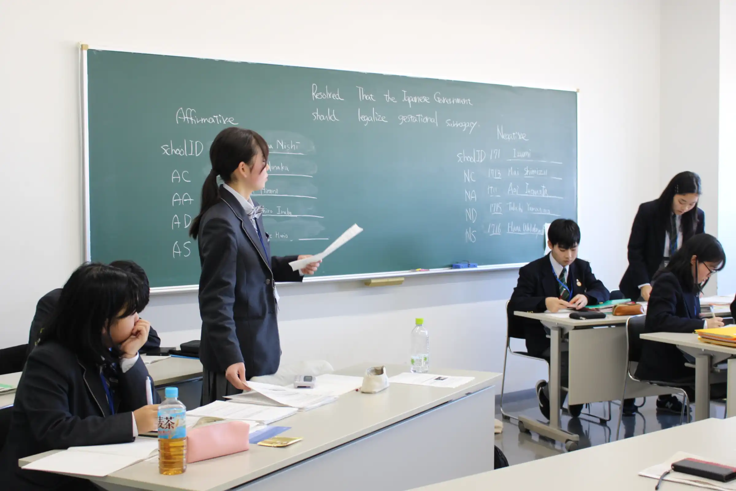 - 特進Ⅰクラスの生徒を中心に英語ディベートを行っています。また、特進Ⅰクラスの英語の授業で6月から11月までの6ヶ月間集中的にディベートの学習をします。