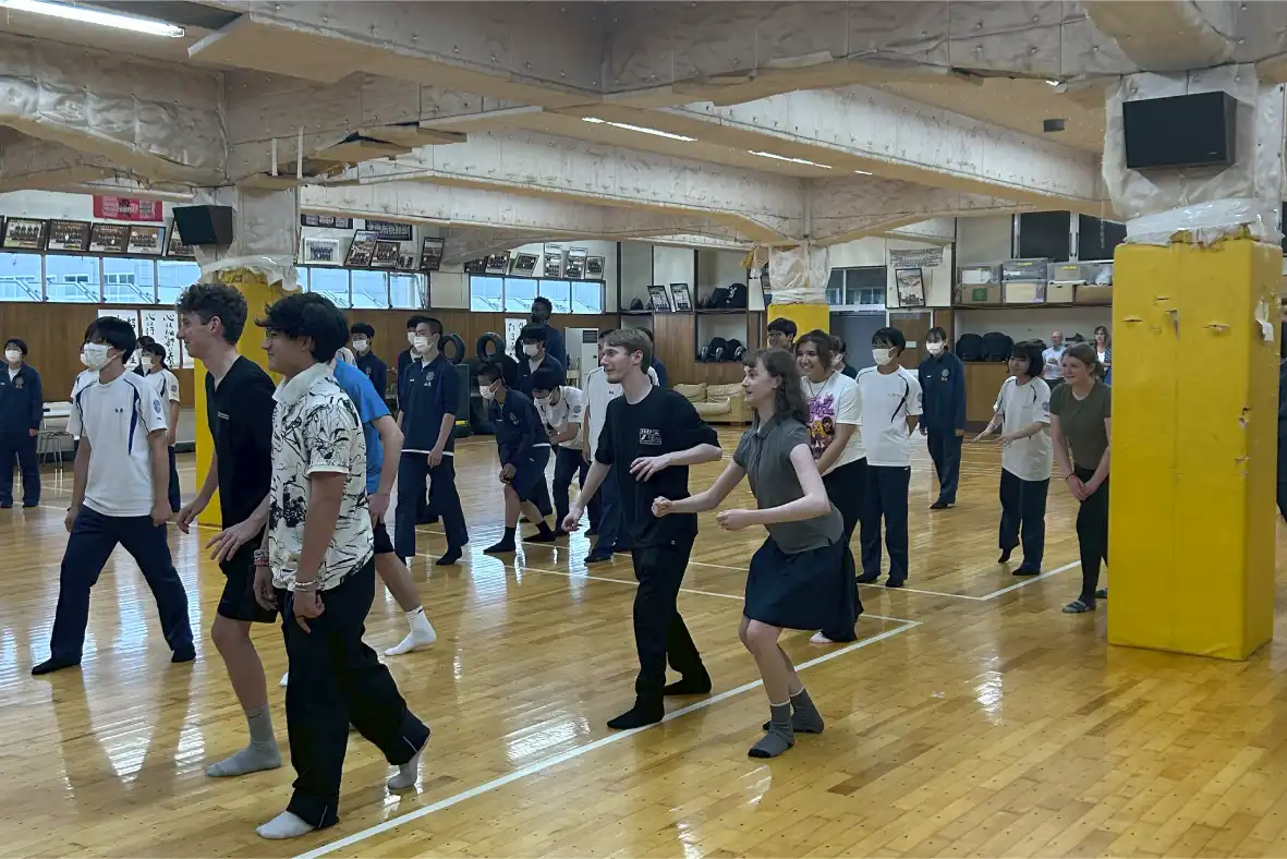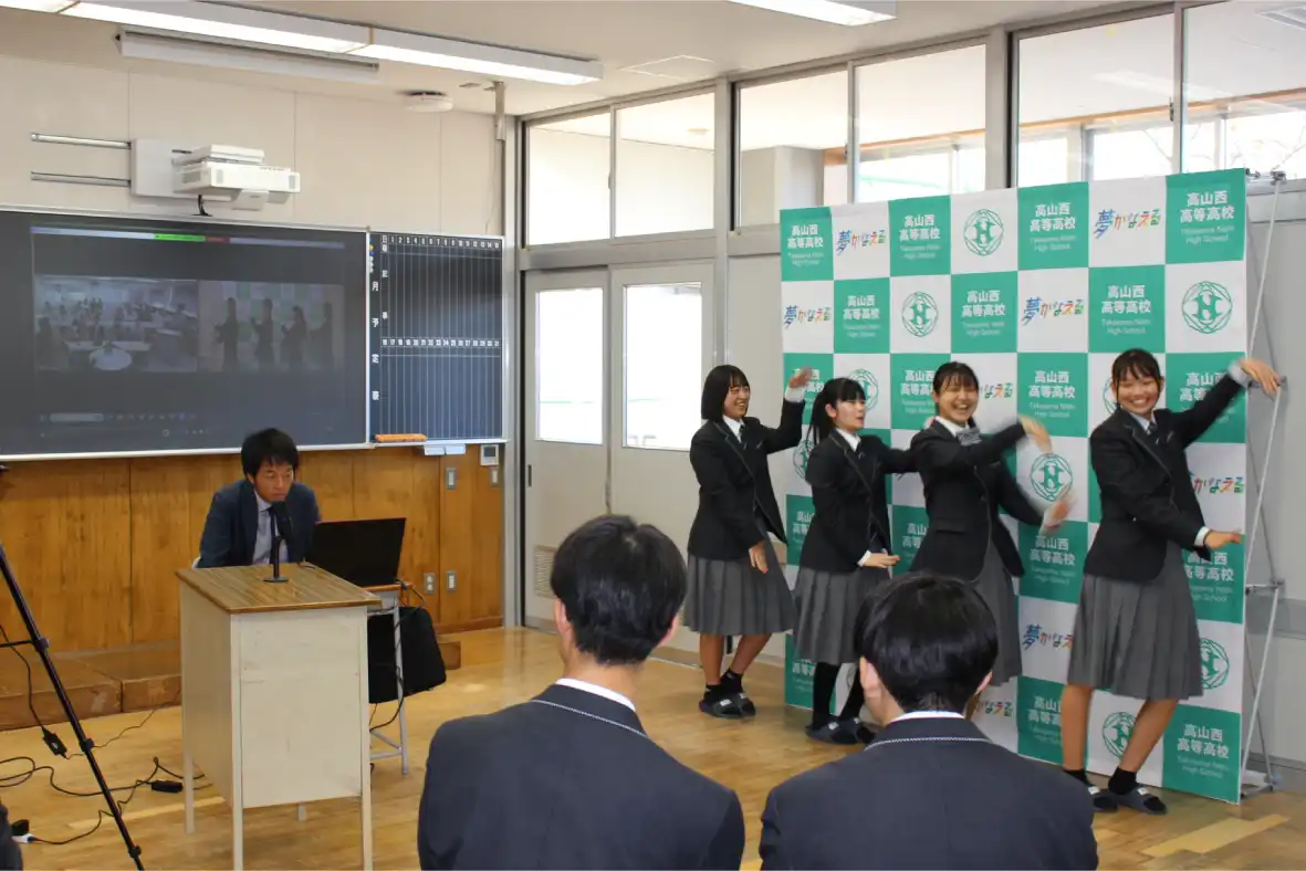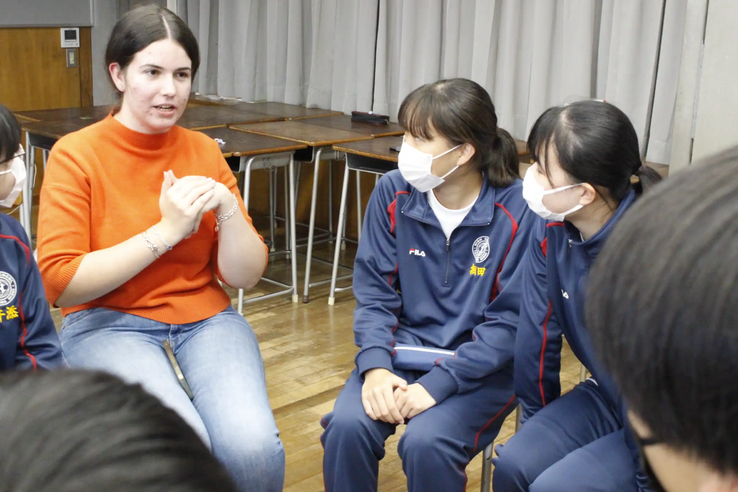 本校では、可能な限り多くの留学生を受け入れ、生徒たちが楽しく異文化に触れ、積極的に交流する機会を継続的に設けています。昨年度は、5つの団体を受け入れました。 6月には、デンバー(アメリカ)の高校生たちが来校し、日本の伝統的な遊び「だるまさんが転んだ」などを共に楽しみ、英語だけでなくジェスチャーを踏まえながら生徒たちと交流しました。書道体験では、デンバーの高校生が好きな漢字を書き、その作品を大切に持ち帰りました。10月には、ルーマニアの学生(JICA)からボランティア活動の報告やシビウ市の魅力を中心にプレゼンテーションをしていただきました。11月には、安東中央高校(韓国)の生徒とのオンライン交流を実施しました。その後1月には学校訪問され、探究飛騨の発表や体育の授業に参加するなど交流を深めました。11月下旬には、シンガポールから高校生が来校しました。調理実習ではちらし寿司を作り、茶華道部やウインドアンサンブル部の活動にも参加しました。また、日本語ディスカッションと英語ディベートを行い、テーマについて本校生徒と真剣に議論している様子がありました。短期間ではあったものの、お互いに密な時間を過ごしました。12月には、岐阜大学在学中のブラジルとペルーからの留学生との交流がありました。文化や食事、動物などをテーマに異文化交流が行われました。生徒たちも一生懸命に英語でコミュニケーションしようとする姿勢が見られました。